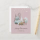 Cute Merry Christmas postcard featuring a watercolor winter scene with a buck and a doe in a snowy forest and shining stars above them. Easily personalise this joyous holiday postcard with your family name, return address and additional text as desired.