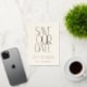Elegant Mid Century Modern Save the Date with Gold Foil Typography on a Cream Background