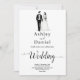 This elegant black-and-white arch wedding invitation is perfect for a modern wedding. The simple design features elegant black calligraphy and a bride and groom illustration on a clean white background. The invitation card includes the wedding details on the back instead of paying for a separate enclosure card.