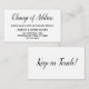 Keep your friends and family up to date with your new address using these simple, elegant enclosure cards. Versatile notes read "Change of Address" on the front and "Keep in Touch!" on the back, using a modern, casual, handwritten script font. Use the template fields to add all your details to personalise this design for your own use. The black type was placed over editable white; you can change the background to any colour you wish. Likewise the fonts can be changed if you wish to edit the design a bit more. // Designed by Melody Watson for Paper Muserie.