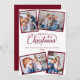 Elegant Minimal Christmas Script 4 Photo Burgundy Holiday Card