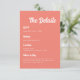 Elegant Minimal Coral Pink Script Wedding Details Enclosure Card. Customise with RSVP, wedding website, location, and accommodations info for your guests. Please message the designer if you need help making any changes.