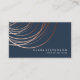 Modern business card design featuring faux rose gold abstract design on a navy blue background.