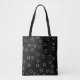 Modern geometric pattern featuring triangles, circles and squares in black and white.