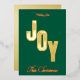 Elegant corporate JOY Christmas card with bold gold foil on a rich background. Add your company logo and name for a professional personalised holiday greeting. Perfect for businesses sending Christmas cards to clients, staff, or partners. Customise the back with your own message and signatures. Matching envelopes available.