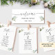 Elegant seating chart header with delicate Eucalyptus greenery details and modern handwritten calligraphy elements. Coordinating seating chart cards available. A double-sided card so guests can look from both, front and back for their names. Clear space all around giving you the liberty to use clips or punch holes for hanging displays. Part of our "Minimal and Graceful Eucalyptus Wedding" collection with a variety of coordinating products available, including matching seating chart cards, table number cards, and menus.