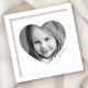 Minimal and elegant design featuring your photo inside a heart shapes frame with the name in gold or silver foil. Simple and tasteful.