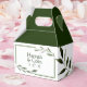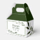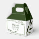Elements: watercolor leaves, greenery, foliage set against a clean double frame. Colours: white, green, olive, moss, hunter green, forest green, dark green, pthalo green, British racing green. Themes: modern, classic, vintage inspired, elegant, botanical, foliage, garden, winery, outdoor wedding, spring, summer, simple, clean, whimsical. Collection: Elegant Minimal Leaves Frame Green Olive Hunter White Product Type: Favour Box - Gable
