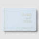Elegant wedding guest book in a sleek, modern, and minimal design with smooth velvety dusty blue hardcover and real foil details in the foil colour of your choice. Foil in gold, silver, or rose gold. Design with the ability to add any text you like on the front, spine/side, and back. If you prefer the back without any text, please leave their corresponding template text boxes blank.