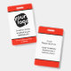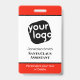 This elegant badge is perfect for any company looking to give their staff an individualised look with customised text and colours. The design features a red, black and white background that can easily be customised, as well!