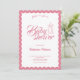 Celebrate the mom-to-be with timeless charm using this elegant scalloped Baby Shower Invitation. Featuring a soft neutral background framed by a bold pink scalloped border, this design blends classic femininity with a modern, playful touch. The graceful script typography paired with a delicate bow illustration adds a romantic and refined feel, perfect for a stylish celebration.
