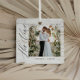 Love is in the air—and in every detail of your special day! Capture the essence of your heartfelt promises with our personalised wedding vows ornament, beautifully featuring your custom photos. The front showcases a modern white-grey marbled wooden faux texture, adding a touch of elegance and contemporary charm. Let your love story shine through and create a timeless keepsake that will warm your heart every holiday season. Say “I do” to this perfect blend of memories and artistry—a true celebration of your one-of-a-kind love. Design by Moodthology Papery