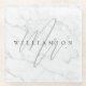 Elegant Minimal White Marble Mr. Script Custom Glass Coaster