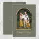Elegant Minimalist Arch Green Gold Holiday Photo