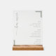 This acrylic sign features a minimalist and elegant design, perfect for displaying your bar menu. The layout is clean and uncluttered, with "bar menu" written in flowing cursive on the left side, while structured lists of beer, wine, and spirits are neatly organized on the right. The color palette consists of black text on a white background, creating a refined contrast that enhances readability. Decorative corner brackets add subtle visual interest, complementing the modern yet classic aesthetic. Ideal for bars or home entertaining spaces, this sign conveys a sophisticated and inviting atmosphere.