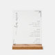 This acrylic sign features a minimalist and elegant design, perfect for displaying your bar menu. The layout is clean and organized, with "bar menu" written in flowing cursive on the left side, while the right side lists sections for Beer, Wine, and Spirits in bold, sans-serif typography. Decorative geometric line art accents add subtle visual interest to the corners, enhancing the modern aesthetic. The monochromatic color palette of black text on a white background emphasizes clarity and sophistication, making it an ideal choice for any stylish setting.