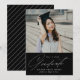 Simple graduation announcement featuring the graduate's photo at the top with "Graduate" displayed in a white modern calligraphy script below on a black background. Personalize the front of the photo graduation announcement by adding the graduation year, graduate's name, and school name. The card reverses to display a black and white diagonal stripe pattern. The 2023 graduation announcement is perfect for both high school and college graduates.