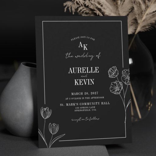 Elegant Minimalist Black Rustic Floral QR Wedding Invitation