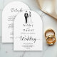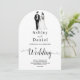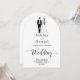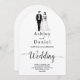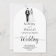 This elegant black-and-white arch wedding invitation is perfect for a modern wedding. The simple design features elegant black calligraphy and a bride and groom illustration on a clean white background. The invitation card includes the wedding details on the back instead of paying for a separate enclosure card.