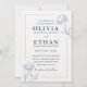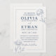 Elegant Minimalist Blue Floral Sketch Wedding Invitation