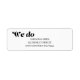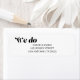 Introducing our modern and stylish "We do" wedding return address labels. The gorgeous bold black calligraphy and classic lettering on a white background is perfect for formal weddings. And, you can change the colours of the text and background to match your theme. Make a statement with our personalised return address labels. Order now and add a touch of elegance to your correspondence!