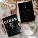 Black wedding invitation with photo on the back offers a bold, modern aesthetic perfect for formal evening weddings, upscale black tie events, or sleek minimalist ceremonies. The front showcases a sleek black background with striking white text in an elegant serif and cursive script font, paired with a delicate botanical illustration that adds a subtle organic detail. This high-contrast design creates a luxurious and dramatic tone, making it ideal for city weddings, modern venues, or winter celebrations with a refined colour palette. The reverse side features a full-size custom photo where couples can highlight a favourite engagement image or romantic portrait, adding a deeply personal and memorable touch. With clearly structured text, this editable two-sided template is both stylish and easy to personalise. Its sleek, professional look ensures compatibility with monochrome or metallic wedding colour themes, making it a standout choice for couples seeking a sophisticated wedding invitation that reflects modern elegance with personalised charm. Available as printed cards or an instant digital download.