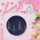 Elegant minimalist Christmas tree design blue Paper Plate