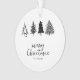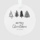 This elegant Minimalist Christmas Tree Ornament features simple black-and-white Christmas tree illustrations surrounded by snowflakes. You can personalise this ornament by adding a custom greeting and your family name.