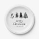 These elegant Minimalist Christmas Tree Paper Plates feature simple black-and-white Christmas tree illustrations surrounded by snowflakes. You can personalise these paper plates by adding a custom greeting and your family name.