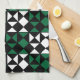 Elegant Minimalist Geometric Pattern kitchen towel. Mid century modern geometric pattern which has white green black triangles.