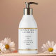 An elegant minimalist cosmetics label with a white background, black text, and a faux gold border.