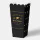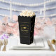 A modern, elegant and simple minimalist graduation party Popcorn Favor Boxes design features a black background and golden line border include a graduation gold cap icon pattern and stylish typography golden lettering. These favor boxes perfect for graduation celebrations party. Customise with your own text, fonts and colors or remove and celebrate your graduation party.