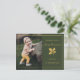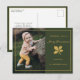 Elegant Minimalist Green/Gold Photo Holiday Postcard