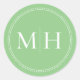Elegant Minimalist Green Monogram Dotted Border Classic Round Sticker