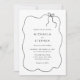 Invite your guests to your special day with this minimalist coquette-inspired wedding invitation, blending timeless elegance with a delicate charm. Featuring a gracefully hand-drawn ribbon and bow border, the design exudes a subtle femininity and sophistication. The clean, modern typography highlights the couple's names in bold capital letters, creating a striking focal point against the understated black and white colour scheme. Perfect for a romantic and classic wedding theme, this invitation captures a coquette aesthetic with its graceful and stylish details. Customisable to include your event's unique information, it beautifully sets the tone for an unforgettable celebration.