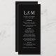 Add a touch of modern style to your wedding reception with our elegant wedding menu. Featuring stylish white monogram and classic lettering on a black background, it's a perfect choice for formal weddings. You can also customise the colours of the text and background to match your theme. Make a statement on your big day with our timeless wedding menu. Order now and add a special touch to your celebration!
