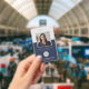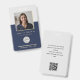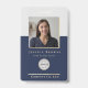Elegant Minimalist Navy Gold Photo Logo QR code ID Badge