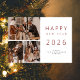 Elegant Minimalist New Year Cheers Family 3 Photo Holiday Card