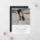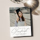 Simple graduation announcement featuring the graduate's photo at the top with "Graduate" displayed in a black modern calligraphy script below on a white background. Personalise the front of the photo graduation announcement by adding the graduation year, graduate's name, and school name. The card reverses to display a black and white diagonal stripe pattern. The 2025 graduation announcement is perfect for both high school and college graduates.