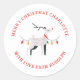 Elegant Minimalist Reindeer Christmas Family Name Classic Round Sticker