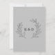 This is a customisable elegant modern minimalist wedding invitation with a hand drawn classic laurel leaves silhouette. The background is light grey. Your monogram inside laurel leaves on the back.