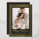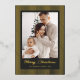Make a bold and luxurious statement this season with this striking art deco inspired holiday card. The background features crisp, thin vertical stripes shimmering in brilliant gold foil, which perfectly frame a sophisticated black center panel. Your favorite family photo is nestled within, and the elegant "Merry Christmas" script glows in matching gold foil, ensuring a modern, chic, and unforgettable greeting.