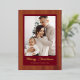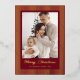 Make a truly grand and festive statement this season with this richly colored photo card. The background is covered in striking vertical stripes, all shimmering brilliantly in luminous gold foil against a deep red base. Your favorite family photo is elegantly framed on a rich burgundy panel, where the handwritten "Merry Christmas" script also gleams in beautiful gold foil, creating an undeniably luxurious and traditional greeting.