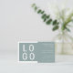 Elegant minimalist template of sage green. This modern and stylish custom design has space for you to add your own square shaped logo but also custom text for contact details for a professional design. The logo is on the left side, with a white backdrop, while the text is on the right, in a white colour font against a sage green colour.