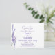 This minimalist watercolor floral save the date wedding invitation features hand-painted purple lavender. Calming lavender flowers in shades of purple and mauve set the perfect tone for your spring or summer wedding. Customise the invitation with your names, wedding date, and venue details.