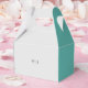 Add a touch of elegance to your wedding favors with our minimalist favor box. Designed to perfectly complement our Elegant minimalist wedding invitation suite, this favor box features an almost white-gray background with the couple’s initials prominently displayed on the top. The sides are accented with small touches of teal, creating a cohesive and stylish look. These favor boxes are ideal for presenting small gifts or treats to your guests, ensuring a memorable and classy addition to your special day.