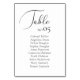 Elegant minimalist black and white Wedding Single seating plan Table Number.