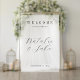 Create your own personalised wedding welcome sign with minimalist style typography and elegant script calligraphy.