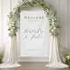 Create your own personalised wedding welcome banner with minimalist style typography and elegant script calligraphy.