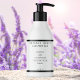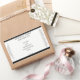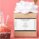 An elegant minimalist cosmetics label with a white background, black text, and a black border.